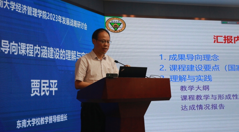 太阳集团tyc539校教学督导组组长贾民平介绍成果导向理念以及课程建设要求的内涵要点,分析课程教学大纲中需要关注的要素等内容。