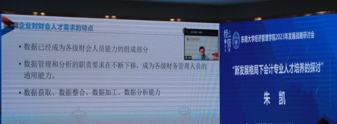 上海财经大学会计学院副院长朱凯线上分享了他对于新发展格局下复合型会计专业人才培养的思考,启发高校未来的人才培养需要从企业需求出发,提出进行人才教育时加强场景应用类的学习等。