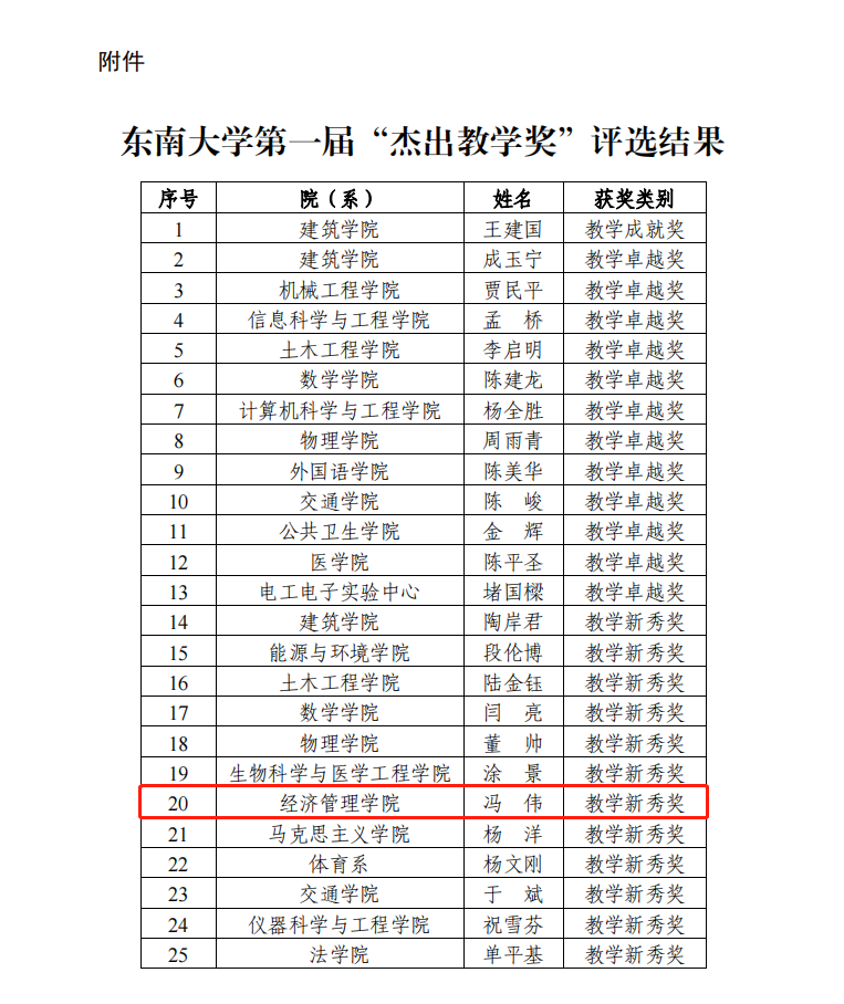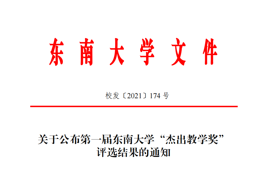 据悉,太阳集团tyc539“杰出教学奖”每两年评选一次,分为“教学成就奖”“教学卓越奖”“教学新秀奖”三个类别,旨在全面落实立德树人的“东大内涵”建设任务,着力践行“课比天大、生为首位”的育人理念,切实增强广大教师“立德树人、教书育人”的责任感和荣誉感,表彰奖励一批在教育教学工作中作出突出贡献的先进典型。