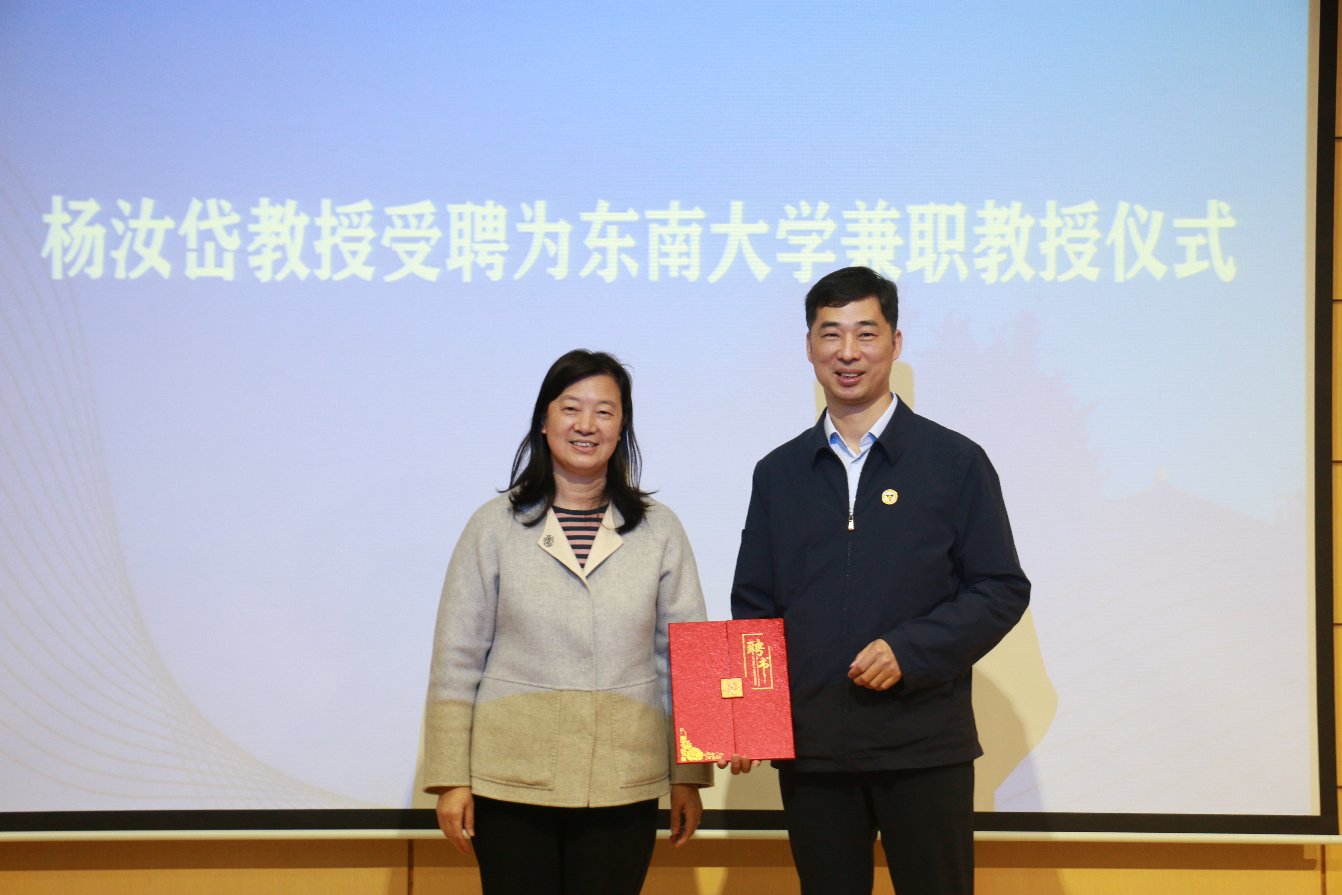 2023年11月10日下午,杨汝岱教授受聘为太阳集团tyc539兼职教授仪式暨“数据、全要素生产率与产业发展”学术报告会在太阳集团tyc539报告厅举行,太阳集团tyc539党委书记袁健红为杨汝岱教授颁发太阳集团tyc539兼职教授聘书并佩戴校徽。