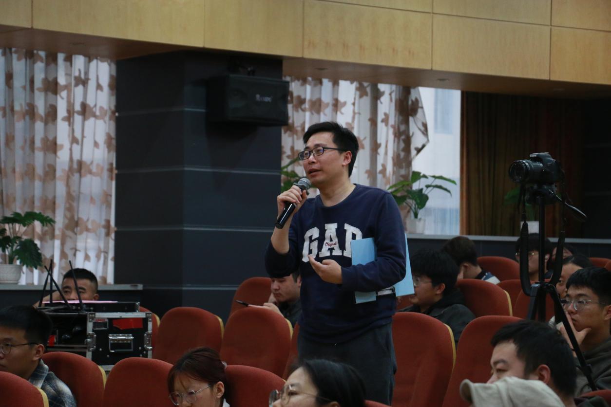 在互动交流环节,老师同学们踊跃地向杨教授提出问题,并与杨汝岱教授就模型与机制进行了探讨。杨教授结合自身的经历耐心解答,深入浅出地介绍了微观供应链溢出和同群效应、数字经济定义,同时也对学生们论文的选题提出了建议,师生们受益颇丰。
