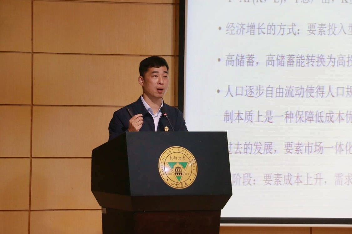 授聘仪式结束后,杨汝岱教授以“企业数字化发展、全要素生产率与产业链溢出效应”为题,介绍了数字经济发展的潜力,展示了将企业数字化投入纳入传统增长核算模型的可能性,分析了该研究对高质量发展的重要意义。