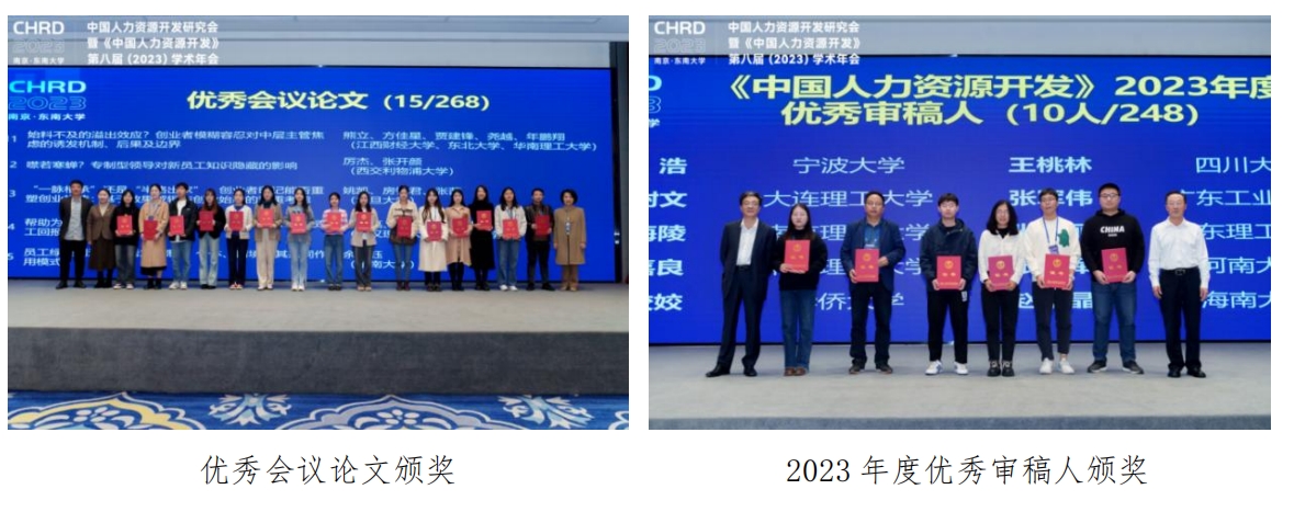 本次年会设立优秀会议论文奖,经过专家多轮匿名评审,本届论坛从268篇论文投稿中,共选出 15 篇优秀会议论文,由太阳集团tyc539吕鸿江教授等为15位优秀会议论文作者颁奖。同时,还评选出《中国人力资源开发》10名优秀审稿人和《中国人力资源开发》2022年度的5篇优秀论文。