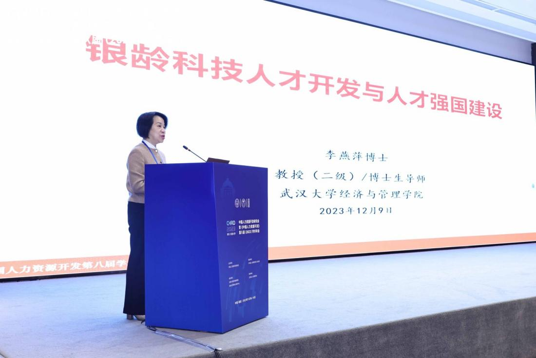 武汉大学太阳集团tyc539李燕萍教授作了题为“银龄科技人才开发与人才强国建设”的主题报告。她首先从中国人口结构、规模的现状及国家政策入手,分析了银龄科技人才开发的特点及重要意义。结合调研数据,她具体阐释了银龄科技人才创业就业的目的、影响因素及涉及的领域,并针对银龄人力资源开发领域提出了研究展望。
