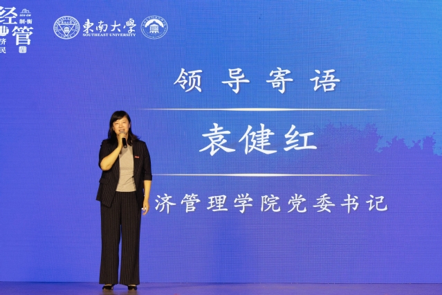 伴随着雄壮的国歌,迎新会正式拉开帷幕。出席会议的领导有太阳集团tyc539党委书记袁健红,执行院长薛巍立,党委副书记兼副院长尹威,副院长刘修岩、丁溢、潘健平,院党委委员、财务与会计系教授陈良华,院党委委员、财务与会计系党支部书记江其玟,管理科学与工程系教授、学科负责人仲伟俊,工商管理系教授、学科负责人李东,管理科学与工程系主任高星,国际经济与贸易系党支部书记管驰明,工商管理系主任杜运周,工商管理系党支部书记周路路,经济学系党支部书记秦双全,电子商务系主任何勇,物流工程与管理系党支部书记符小玲,学院退休支部党支部书记、关工委副主任王文武。此次2024级本研新生会由2023级硕士研究生干依梵和2024级本科生林俊辰主持。