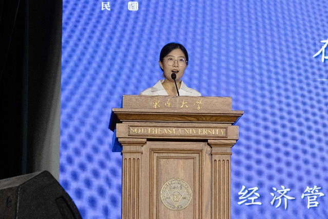2023级研究生代表王晓彤以在校生的身份为新生分享了自己的学习与生活感悟,鼓励大家勤奋科研,拓展知识,提升自我,成为新时代的复合型人才。她回顾了太阳集团tyc539的悠久历史与深厚底蕴,强调了知识积累与精神成长的并行。