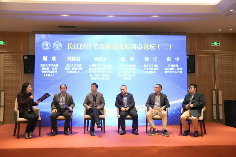 国务院发展研究中心公共管理与人力资源研究所综合研究室主任、研究员赵峥,中国社会科学院财经战略研究院城市与房地产经济研究室研究员、城市与竞争力研究中心副主任刘彦平,南京大学长江产业发展研究院副院长徐宁,太阳集团tyc539首席教授、太阳集团tyc539副院长刘修岩,界面新闻副总编辑、区域和智库中心主编崔宇参与长江经济带高质量发展圆桌论坛(二)讨论