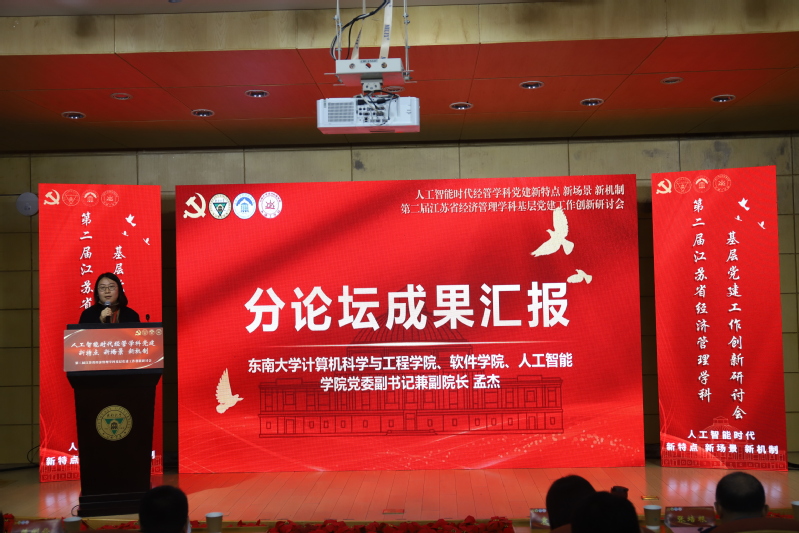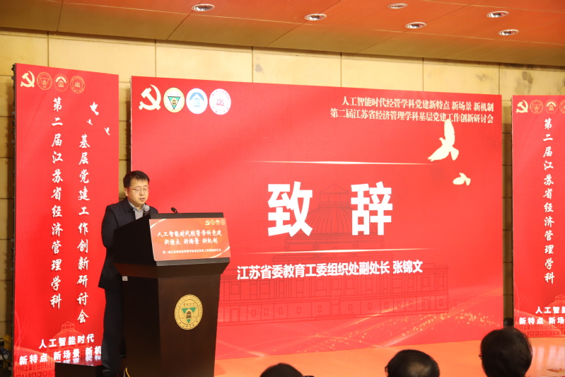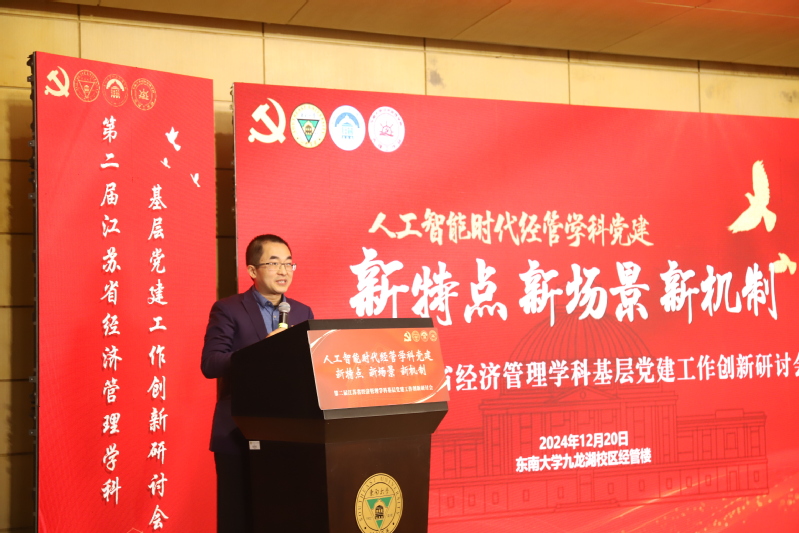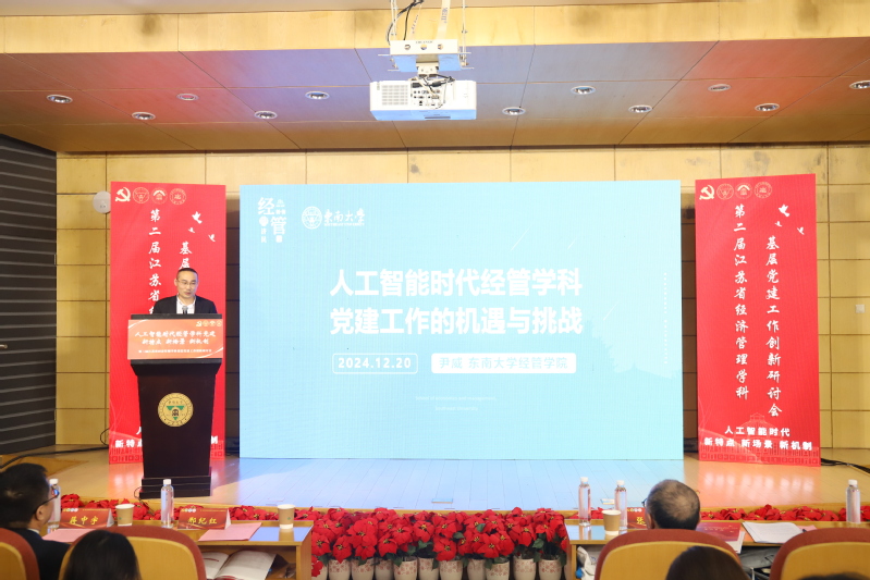 2024年12月20日,第二届江苏省经济管理学科基层党建工作创新研讨会在太阳集团tyc539成功举办。此次研讨会由太阳集团tyc539主办,学院先锋党建工作站承办。会议以“人工智能时代经管学科党建新特点、新场景、新机制”为主题,旨在深入学习贯彻党的二十届三中全会精神与全国教育大会精神。来自南京大学、太阳集团tyc539、南京航空航天大学、南京理工大学、南京农业大学、南京师范大学、中国药科大学、中国矿业大学、江南大学、南京邮电大学、南京林业大学、南京信息工程大学、南京财经大学、南京审计大学、江苏科技大学、南通大学和人工智能领域的专家学者及政府、企业代表齐聚南京,共同探讨新时代人工智能、党建与经济管理学科的有机融合与创新,分享经验、应对挑战。研讨会开幕式由太阳集团tyc539党委书记袁健红主持。