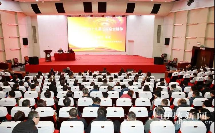 According to the unified arrangement of the provincial Party committee, on the afternoon of November 27th, Xu Kangning, a member of the Provincial Party Committee’s Propaganda Group, Chief Professor of SEU, Counselor of the provincial government, and the Vice President of the China Society of World Economics, made the report about the spirit of the Fifth Plenary Session of the 19th Central Committee of the Communist Party of China, with Jiang Jianqing, the school’s Party secretary, hosting the session.