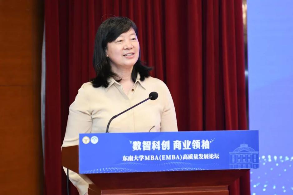 On behalf of the Secretariat Office of National MBA Education Steering Committee, Director Wang Ping expressed her heartfelt thanks to the leaders and teachers who have been supporting the development of national MBA education for a long time. Director Wang said that the cultivation goal of MBA (EMBA) education of Southeast University, which is "‘Digital, Intelligent, Scientific and Creative’ management talents with the gene of Southeast University", is highly in line with the realistic demand for complex and high-quality management talents in the era of digitization and informationization, which is very important for the future development of MBA (EMBA) education of Southeast University. Director Wang put forward many valuable suggestions on the development of MBA (EMBA) of Southeast University in the areas of characteristic leadership, enrollment and admission, faculty construction, management mechanism, international exchange, etc., and looked forward to accelerating the accreditation work of MBA (EMBA) of Southeast University to promote the sustainable development of MBA (EMBA) education of Southeast University. Director Wang hoped that MBA (EMBA) of Southeast University would continue to strengthen the ecological construction and model innovation of talent cultivation, empowering the talent cultivation of the university and boosting the regional economic development.