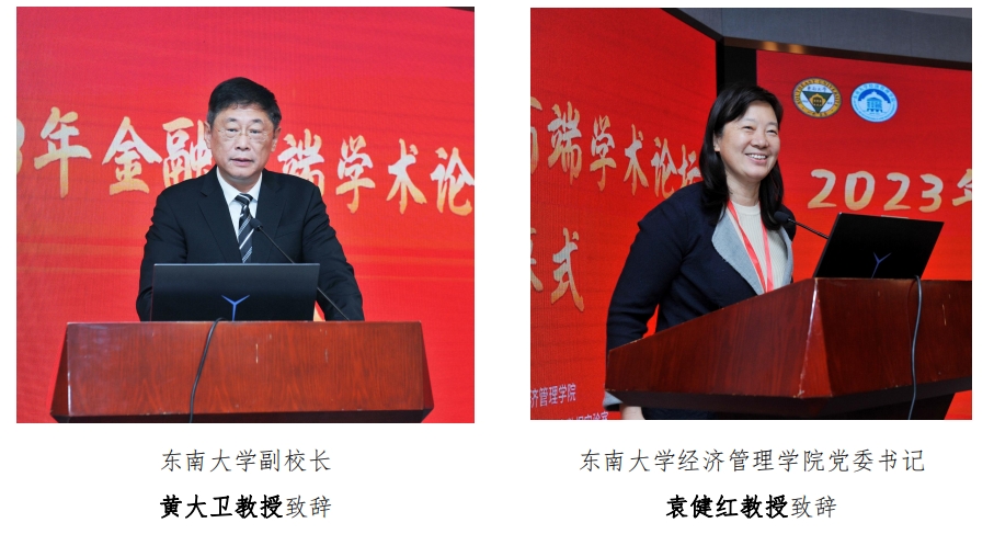 At the opening ceremony, Professor Huang Dawei, Vice President of Southeast University, and Professor Yuan Jianhong, Secretary of the Party Committee of the School of Economics and Management at Southeast University, delivered speeches, extending a warm welcome and sincere greeting to all the guests and experts attending the conference. Professor Liu Xiaoxing, Director of the Department of Finance at Southeast University, presided over the opening ceremony.