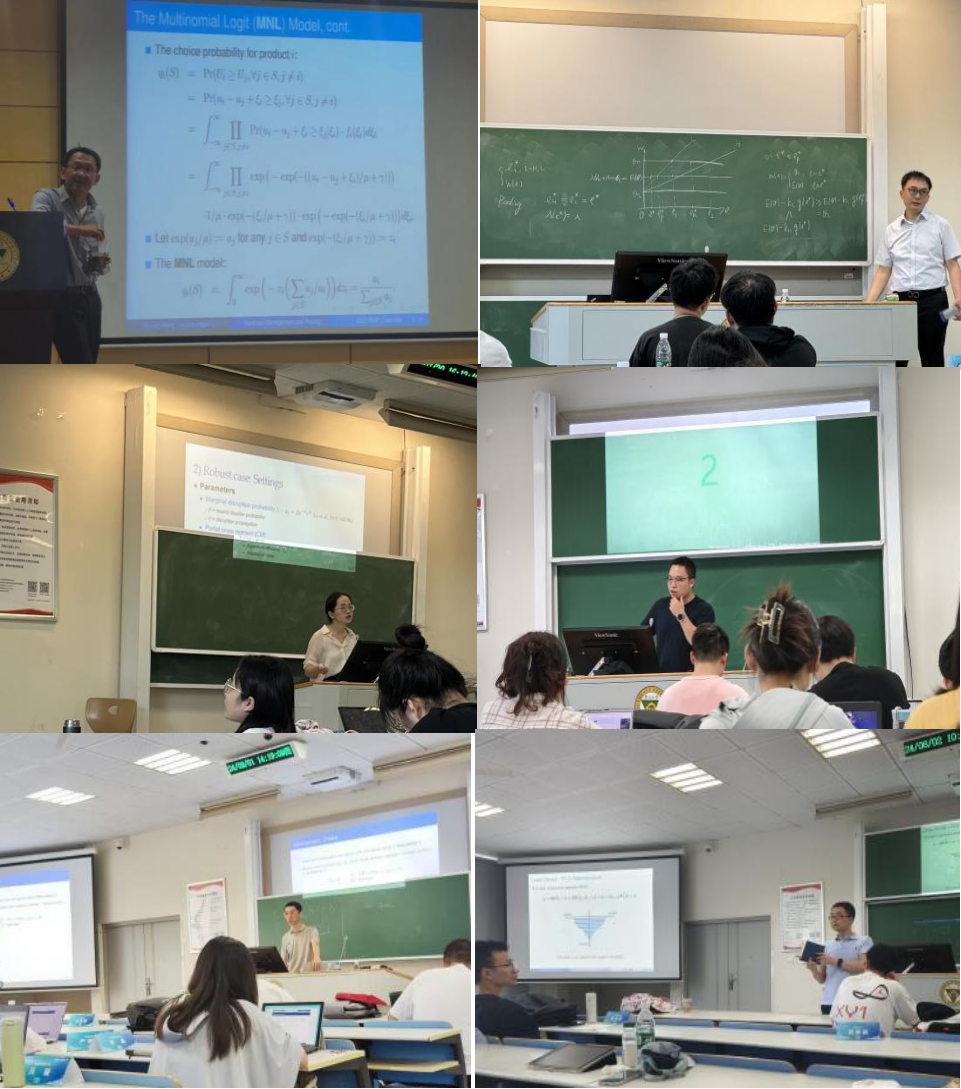 The summer school featured six distinguished scholars as course instructors. Professor Wang Ruxian from Johns Hopkins University explored the theory and practice of revenue management in his course on "Revenue Management and Pricing." Professor Jiang Li from the Hong Kong Polytechnic University systematically explained game theory research methods, case studies, and theoretical applications in supply chain management. Associate Professor Li Yongzhen from Southeast University introduced the basic concepts and applications of robust optimization. Professor Chen Zhi from the Chinese University of Hong Kong delivered an accessible lecture on the theoretical framework of robust optimization and discussed various application scenarios in operations management. Researcher Lin Yunhui from the Agency for Science, Technology and Research in Singapore presented the applications of location problems in logistics and supply chain management. Professor Pan Kai from the Hong Kong Polytechnic University discussed "Dimensionality Reduction Methods in Distributionally Robust Optimization," exploring how dimensionality reduction techniques can improve optimization efficiency.