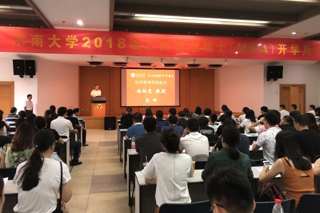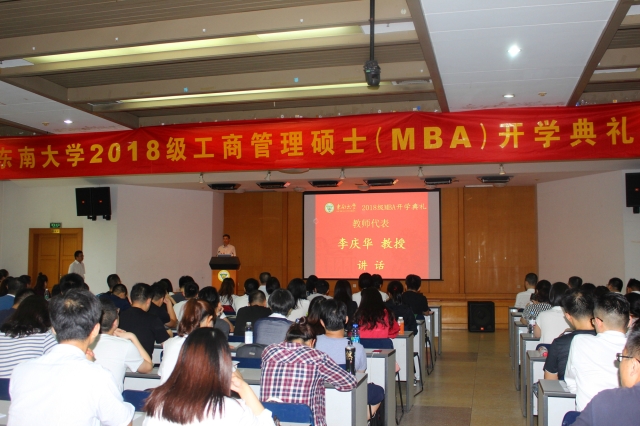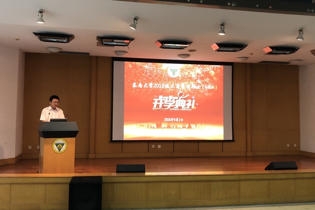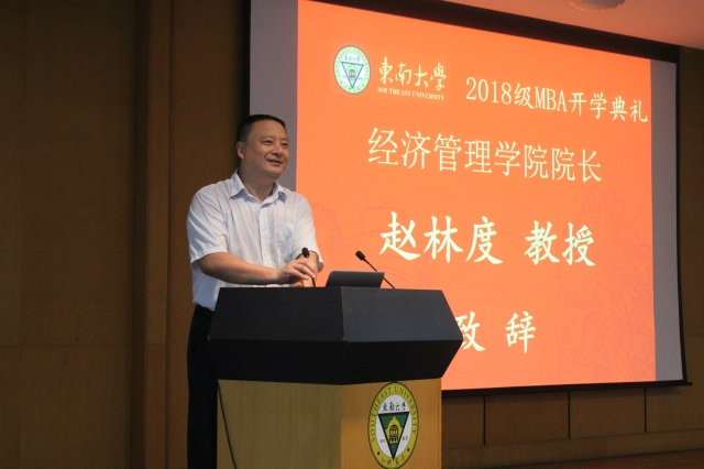 赵林度院长首先致辞。赵院长代表学院热烈欢迎412位MBA新生加入太阳集团tyc539大家庭,并向同学们介绍了太阳集官网近年来在学科发展、师资队伍建设、人才培养、科学研究、MBA发展等方面所取得的突出成绩。他指出,不久前教育部学位与研究生教育发展中心公布了全国首次专业学位水平评估结果,我校工商管理硕士(MBA)获评A-档,这意味着我校MBA进入全国优秀培养院校行列(前15%),这让我校MBA品牌价值得到了进一步提升。在解读经管学院“育胸怀天下英才,铸通达古今新知”的使命、“桃李天下皆有为”的愿景时,赵院长提出了健康管理的理念,特别强调了学思并重、团结协作的重要性。