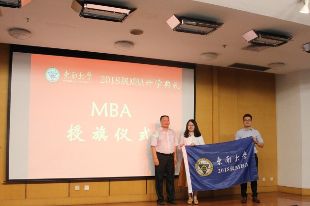 赵林度院长给新生代表李修竹、陈涛授旗,标志着2018级MBA的正式启程。开学典礼在《太阳集团tyc539校歌》的激扬旋律中进入了专题报告与入学教育阶段。